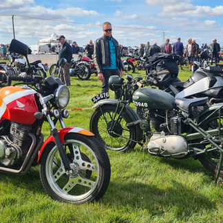 There were two lucky winners of the Ride-In Show, with two £25 cash prizes and commemorate etched glass tumblers awarded at the popular Romney Marsh classic motorcycle event at Hamstreet, Kent on Sunday 15 September. Best Classic Motorcycle was won by Peter Sparrowhawk (Kent) with his 1965 Norton ES400. An unusual machine, this model was the first Norton to be fitted with an electric start, and was made for the American market where it was marketed as the Electra. Peter is pictured receiving his award from scout master Gavin Strachan, of 6th Hastings Scouts with his some of his car-parking team.